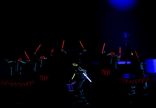 Our shows combine the use of drum line instruments, traditional Japanese instruments, Taiko Drums, and LED-lit performance.